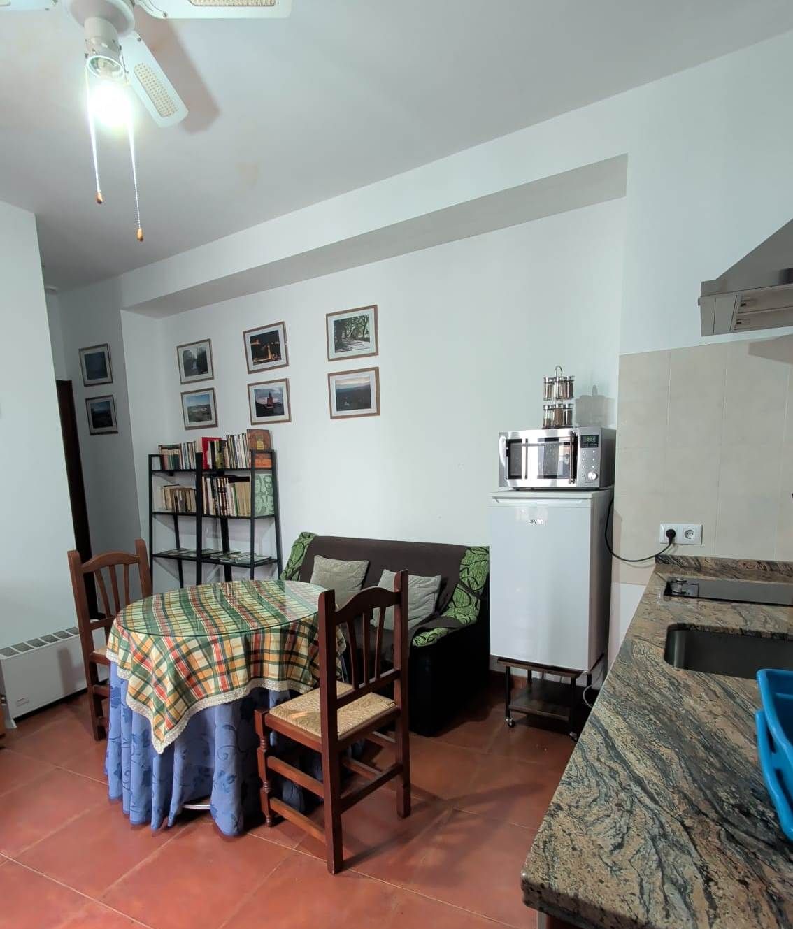 Sala comedor con mesa de cuatro sillas, extensible a seis.